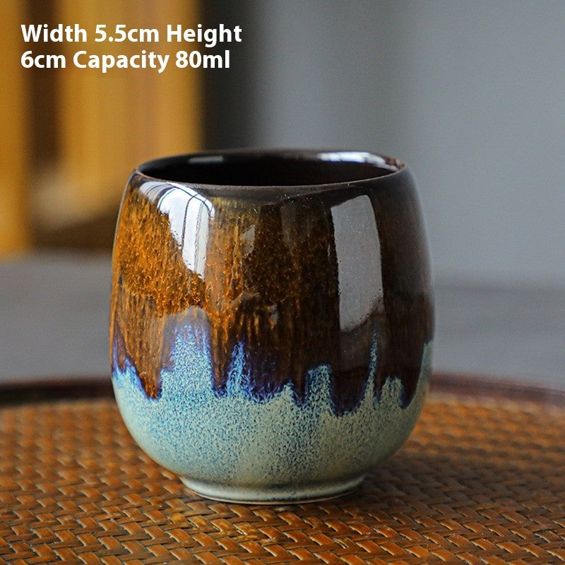Compact and full of personality, this small ceramic cup is designed for concentrated coffee moments. Each one features a hand-colored glaze in rich tones—red, brown, blue, green—or can be enjoyed as part of a mixed-color set.