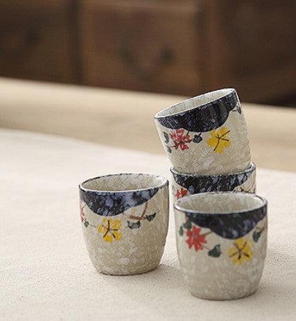 Elegantly crafted with a snowflake-style glaze, this Japanese-inspired sake cup adds a touch of refined tradition to your drinkware. Its hand-drawn floral accents create a serene, luxurious look rooted in classic artistry.